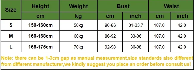 * Suitable for women . To ensure the fit, Please measure your height /weight, refer to the size chart image.