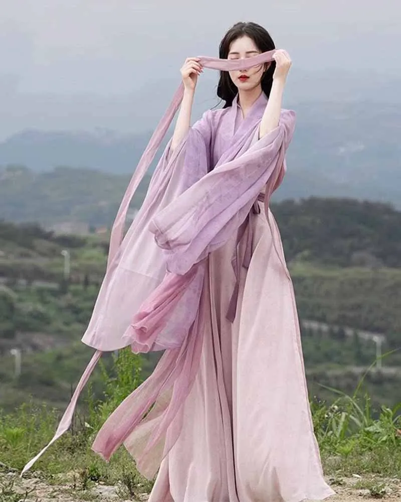 *Feature: High quality polyester material, The fabric is soft and skin-friendly, Elegant and light big long sleeve. Chinese vintage crossover neckline , One-piece wrap skirt, Closed by belt,Ankle length,Has a strong Chinese style of national clothing. Highlight Chinese culture.