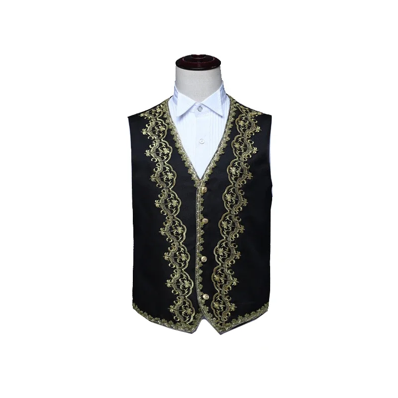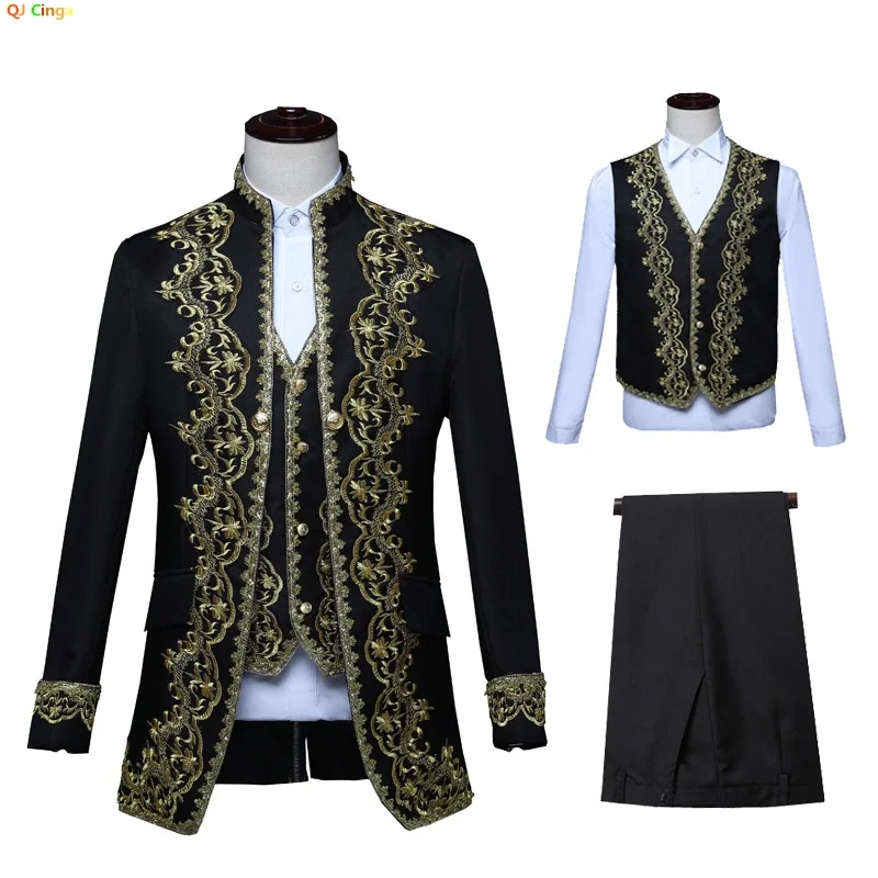 European Gold Vintage Tuxedo Men’s Suit 3 Piece, Black Opera,Stage Performance Costume