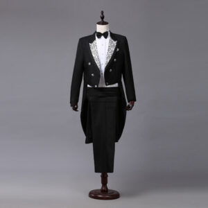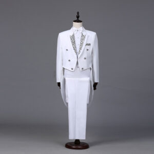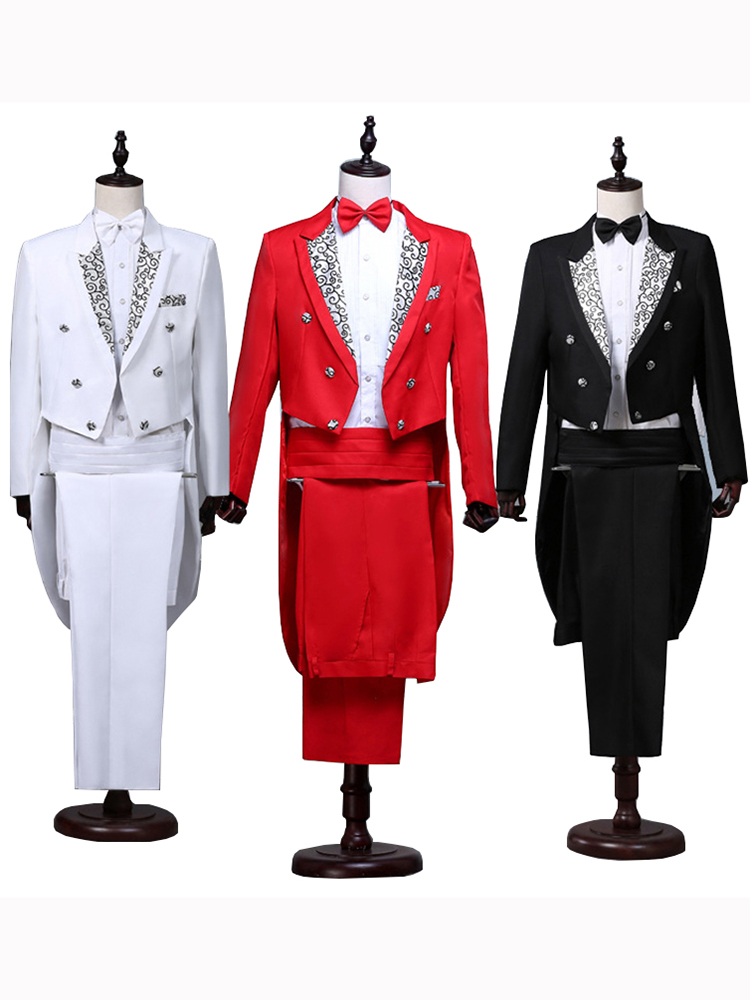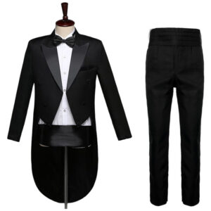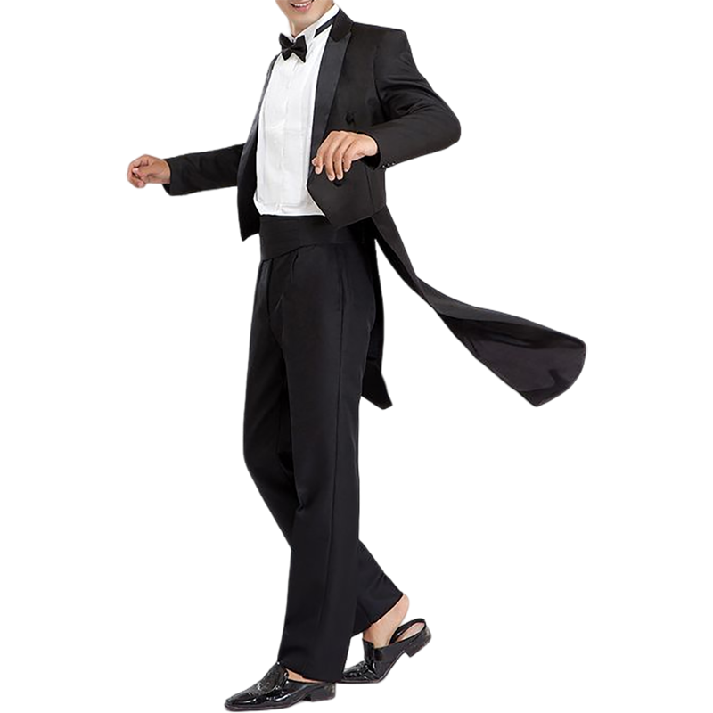 Specifications: Material: High-quality polyester Closure Type: Single breasted with a skinny fit Applicable Scene: Versatile for dance, weddings, proms, and other formal events Applicable Season: Suitable for all four seasons Pant Closure Type: Convenient zipper fly Front Style: Sleek flat front design Features: |Wishclaw Tail Man|Best Costumes 2021 Men|Drawn Tuxedo| **Elegant Design and Versatility** The Mens Tailcoat is a testament to sophistication and versatility, crafted from premium polyester that ensures durability and a smooth finish. The single-breasted closure and skinny fit provide a modern twist on classic tailcoat design, making it an ideal choice for a variety of occasions. Whether you're attending a wedding, prom, or a formal dance, this tailcoat is designed to make a statement. Its flat front style adds a touch of elegance, while the zipper fly ensures a comfortable and secure fit. **Tailored for Every Occasion** This tailcoat is not just a garment; it's a statement of style and confidence. The four-piece set includes a jacket, pants, cummerbund, and bow-tie, offering a complete look for the discerning gentleman. The absence of a shirt allows for personal preference, ensuring that you can pair this tailcoat with your favorite shirt for a customized look. The tailcoat's design is timeless, making it a staple in any man's wardrobe, whether for a special event or as part of a professional ensemble. **Adaptable and Comfortable Fit** Understanding the importance of comfort and adaptability, this tailcoat is designed to fit a range of body types. The skinny fit ensures a sleek silhouette, while the long clothing length provides a classic look. The single-breasted closure allows for easy adjustment, ensuring a perfect fit for any body type. The tailcoat's versatility extends to its adaptability across all four seasons, making it a year-round choice for the modern man. With its jacquard lapel and vibrant color options, this tailcoat is not just a garment; it's a statement of style and confidence.