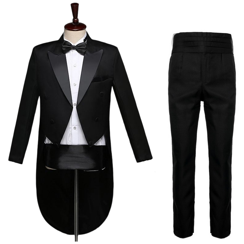 4 Pcs sets: jacket + pants + cummerbund + bow-tie.