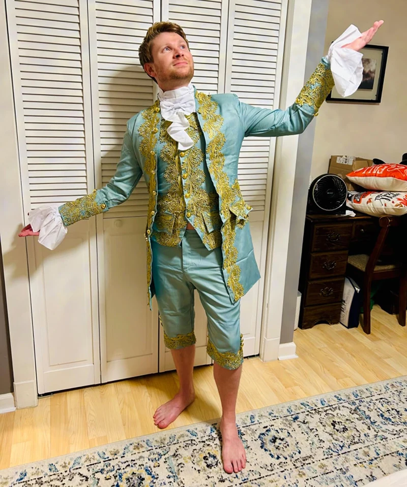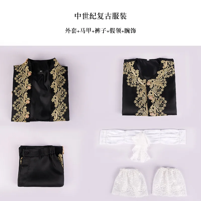 Royal Movie Prince Victorian Colonial Costume Halloween Wedding Men’s Blazer Suits Jabot Tie Outfit Adult Jacket Coat+Vest+Pants
