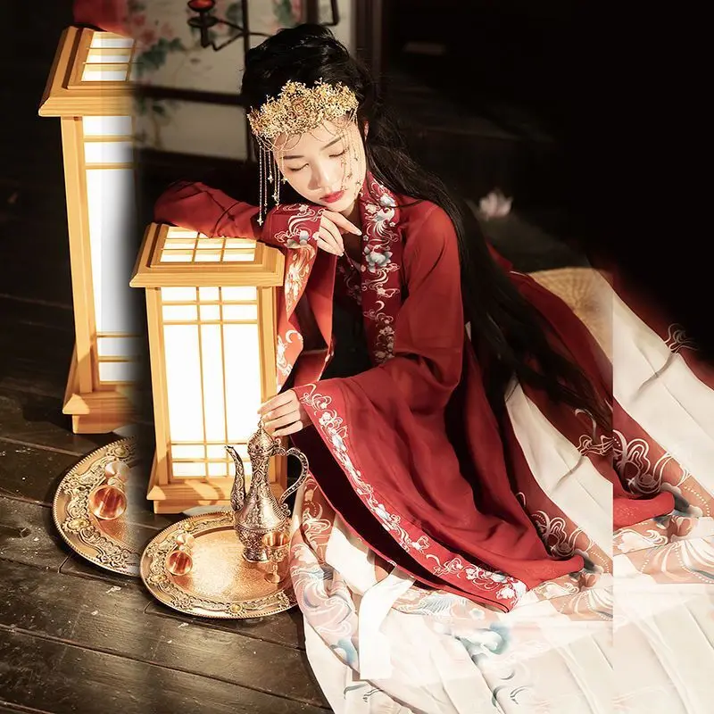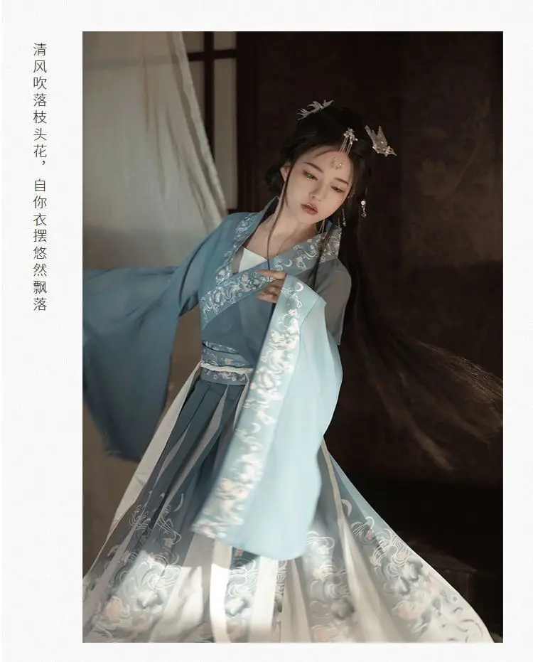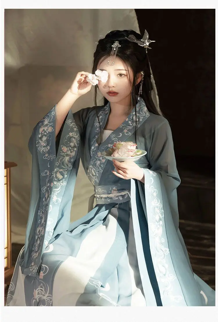 Step into elegance and tradition with this our Hanfu set, designed for those who appreciate a blend of history and modern sophistication. Featuring flowing chiffon fabricdelicate bamboo embroidery, and a layered skirt, this Hanfu is perfect for showcasing a majestic and ethereal aesthetic. The contrast of dark and light tones enhances the classic martial-inspired style, making it ideal for Hanfu enthusiastscosplay, and special occasions.