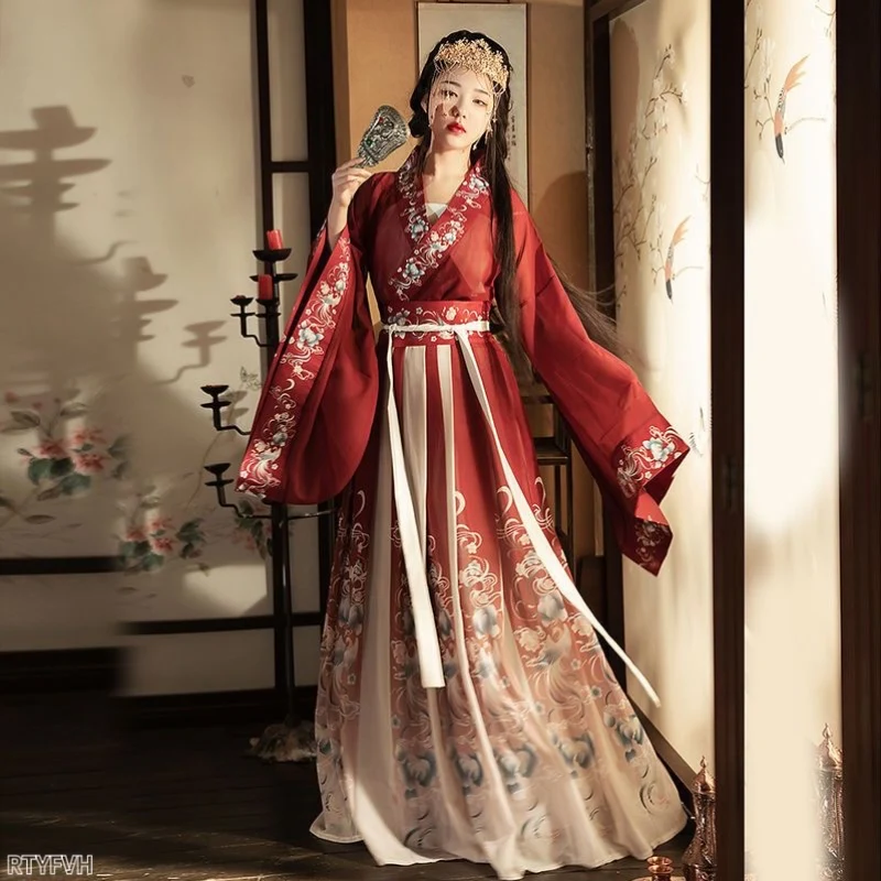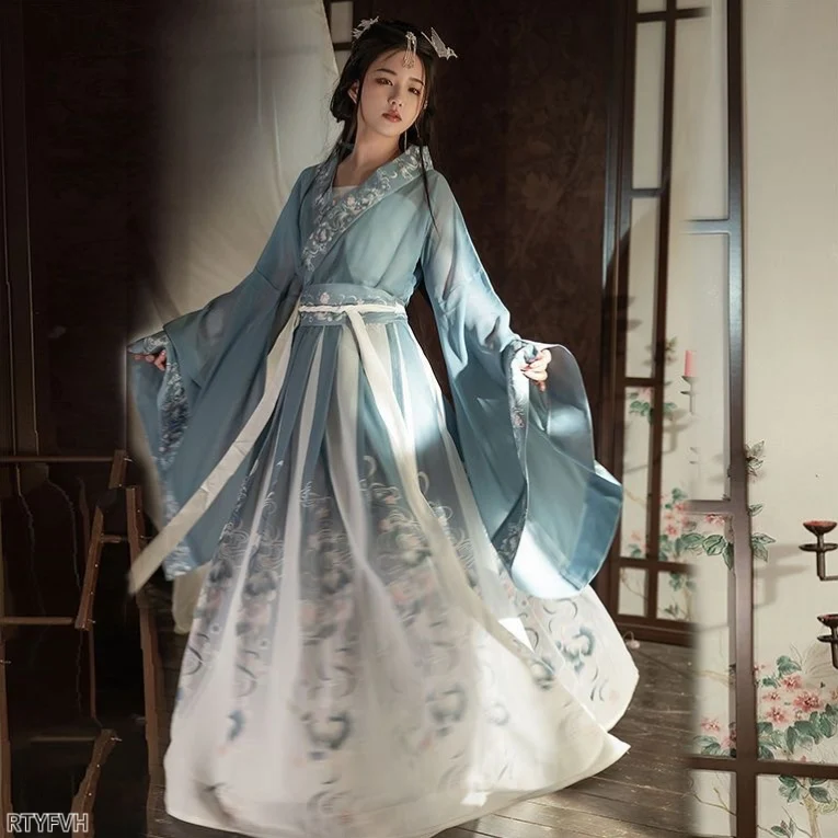 traditional chinese hanfu dress for women blue & red princess dance & cosplay outfitTraditional Chinese Hanfu Dress for Women – Blue & Red Princess Dance & Cosplay Outfit