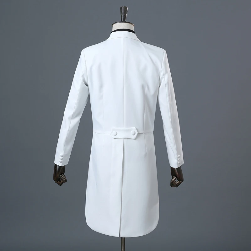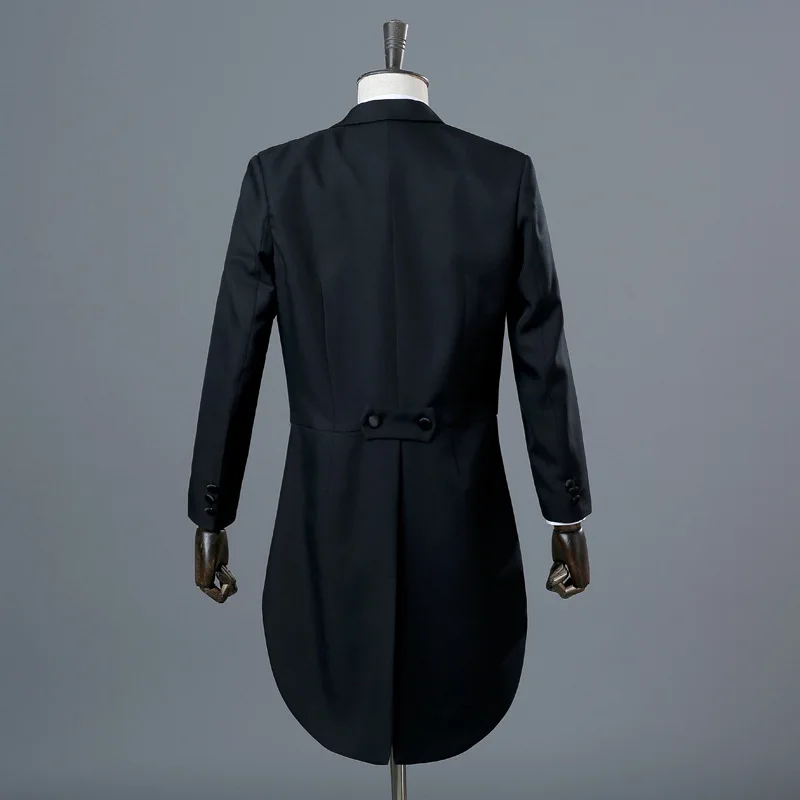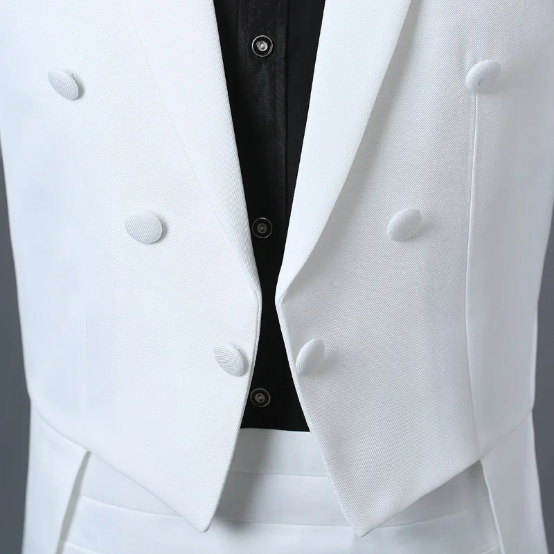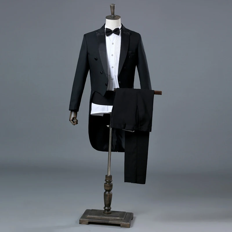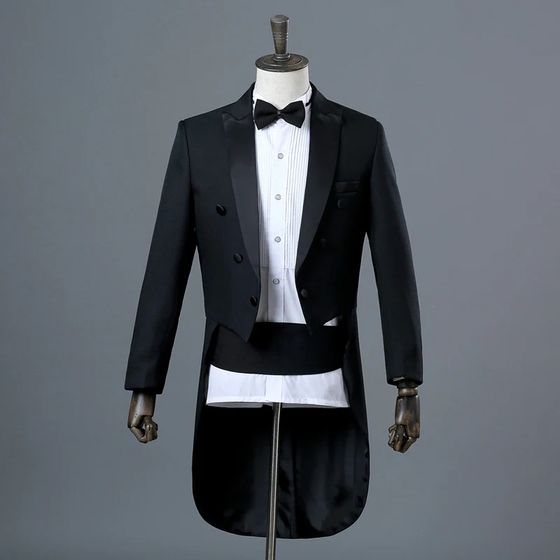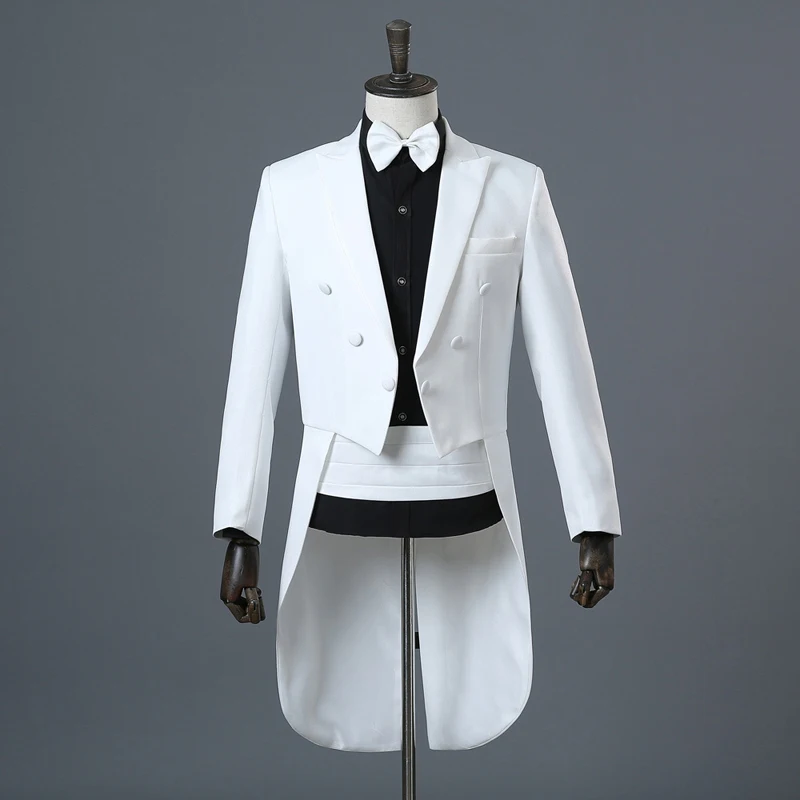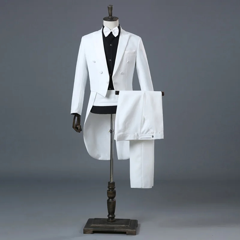 Tuxedo Dress Mens Classic Black White Shiny Lapel Tail Coat Tuxedo Wedding Groom Stage Singer Blazer Pants Suits Set Dress Coat